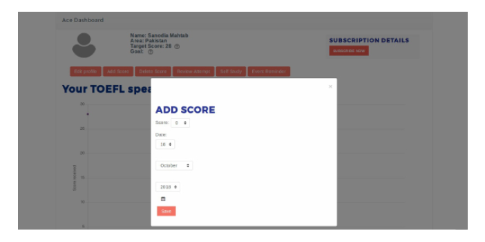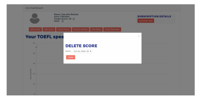 - User can edit their profile, can add and delete TOEFL scores. If a user share content to other users other users also see share and review submission.