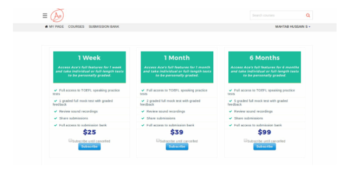 - User can subscribe courses from "Home Page", "Courses" Page and "Submission Bank" Page.