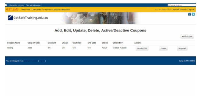 - Admin can set the company(ies) / user(s) / course(s) / course category(ies) for which the coupon code is valid.