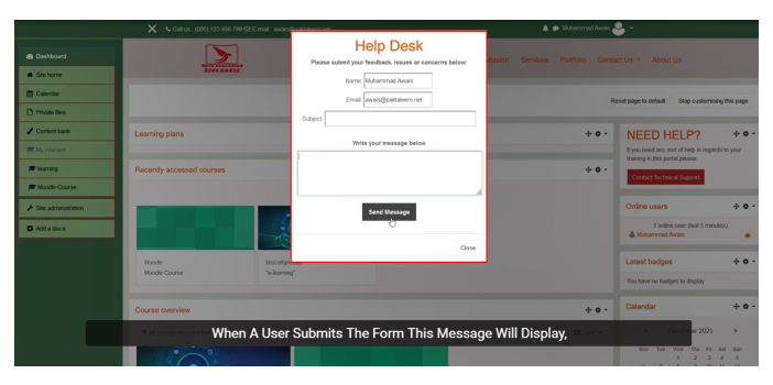 Once a user submits the form, a ticket in PakTaleem support ticketing system will be created with following details: