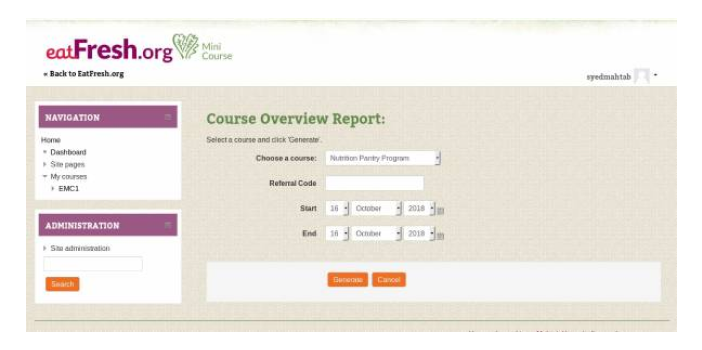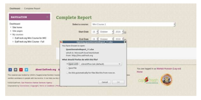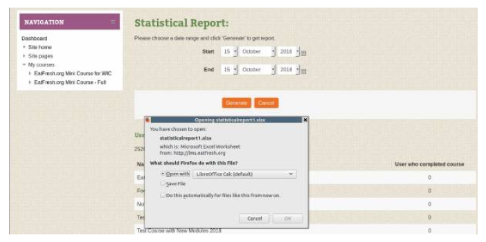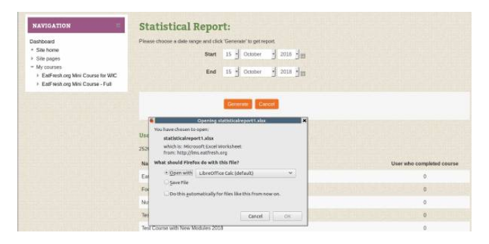 - Then, it displays course name and displays the count of users who have been completed course. - - And also show the user counts which are created during selected time, also report can be downloaded in excel file.